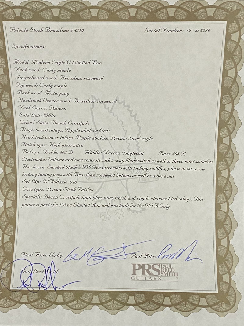 PRS Private Stock Modern Eagle V Limited Run Beach Crossfade